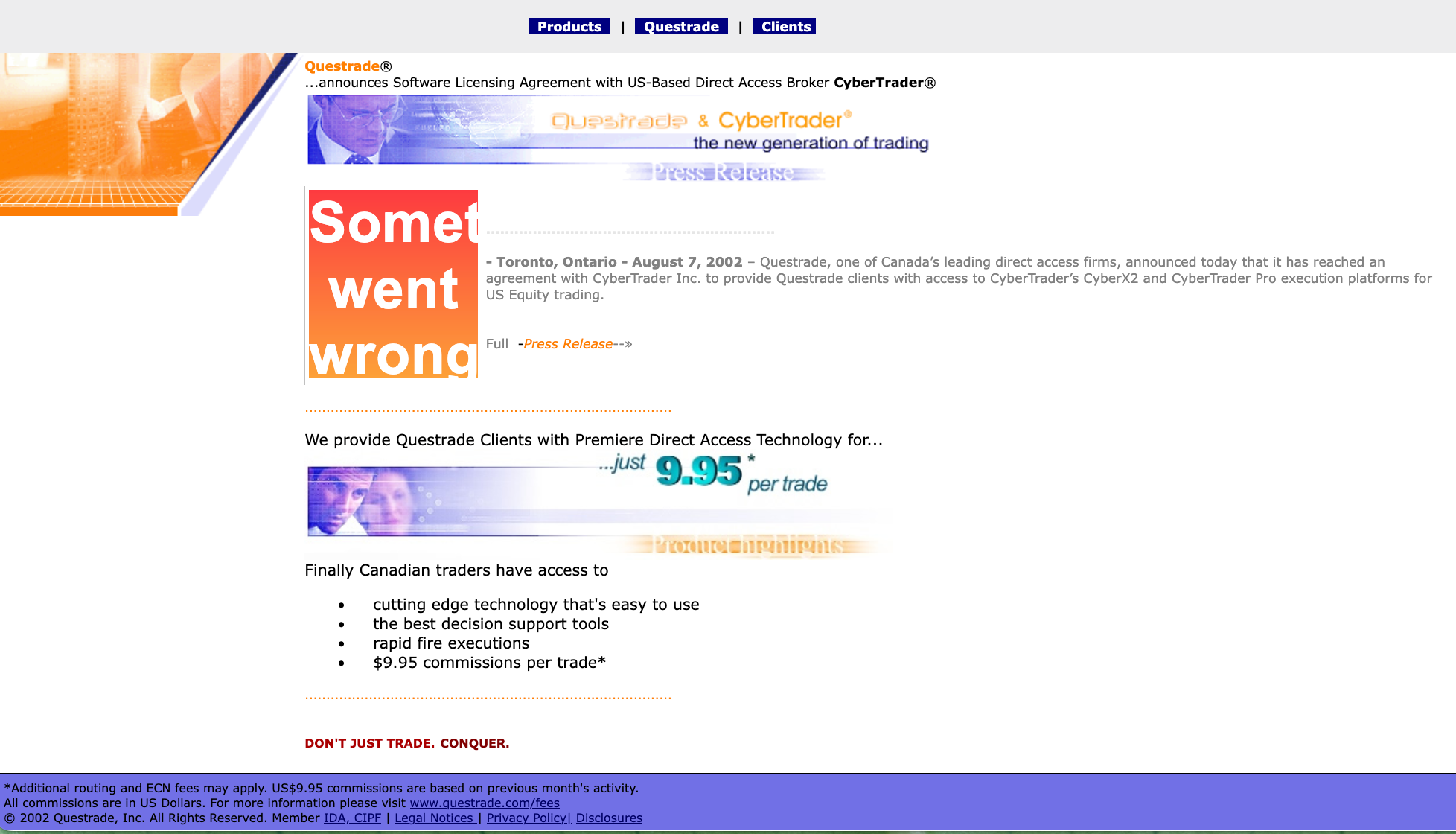 Here's something cool - the homepage of Questrade's website back in August 2002 (via the Wayback Machine):